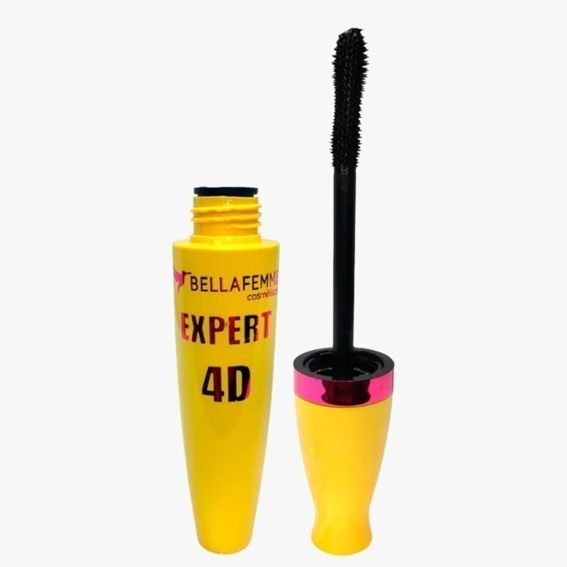 Máscara de cílios. Bella Femme Expert 4D promove fios mais curvados e volumosos, com efeito de cílios postiços e um mega volume em 4D.
